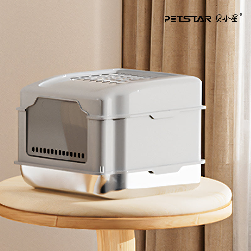 Die Edelstahl-Katzentoilette S5 vereint Funktionalität und Langlebigkeit in einem durchdachten Design. Das robuste Edelstahlgehäuse garantiert Langzeitbeständigkeit und einfache Reinigung. Mit großzügigem Fassungsvermögen reduzieren Sie die Reinigungsfrequenz erheblich. Die integrierte Sprühfunktion neutralisiert Gerüche effektiv und hält die Umgebung frisch. Über die begleitende App können Sie Videoaufnahmen abrufen und den Zustand der Toilette jederzeit überwachen – ideal für berufstätige Katzenhalter. Ein intelligentes System, das Hygiene und Komfort für Ihr Haustier optimiert