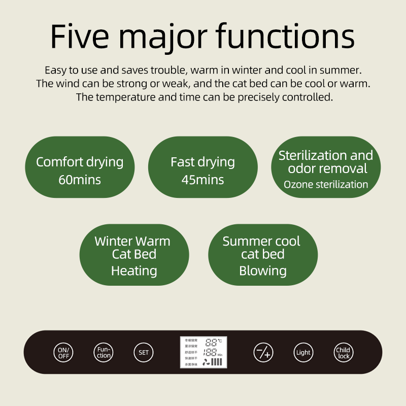 Der Trocknungsofen Katzen A9 bietet professionelle Trocknung mit beeindruckender 68-Liter-Kapazität für verschiedene Tiergrößen.Das Gerät kombiniert effiziente Wärmetrocknung mit fortschrittlicher Sterilisationstechnologie, die Bakterien und Keime zuverlässig eliminiert.Die intelligente Konstruktion ermöglicht schnelles Zusammenfalten zur platzsparenden Aufbewahrung – ideal für Grooming-Salons und Haushalte mit begrenztem Platz.Die präzise Temperaturkontrolle schützt empfindliches Fell vor Überhitzung und garantiert optimale Trocknungsergebnisse.